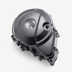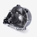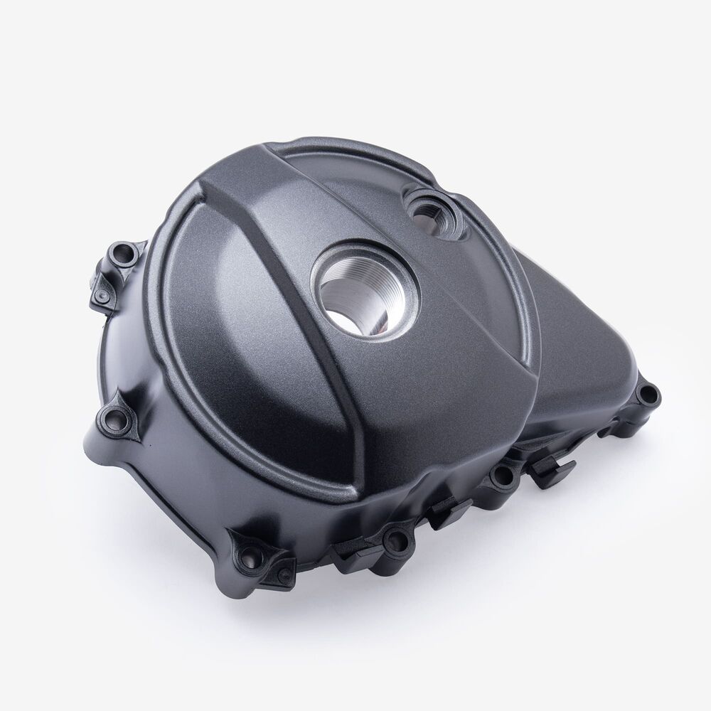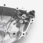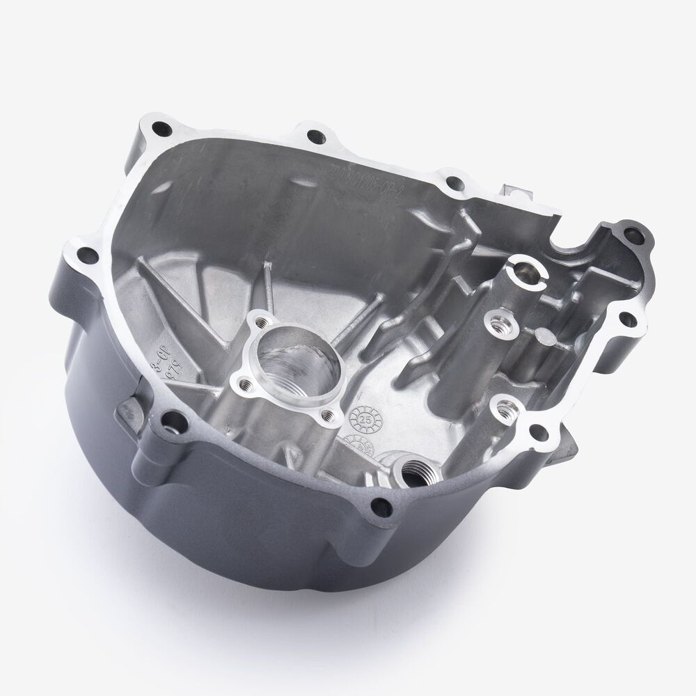 The left engine casing in a motorcycle encloses and protects the engine's internal components on the left side, ensuring structural integrity and safeguarding against dirt, debris, and damage.