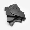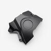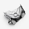 The left engine casing in a motorcycle encloses and protects the engine's internal components on the left side, ensuring structural integrity and safeguarding against dirt, debris, and damage.
