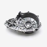 The right engine casing in a motorcycle encloses and protects the engine's internal components on the right side, ensuring structural integrity and safeguarding against dirt, debris, and damage.