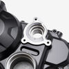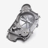 The right engine casing in a motorcycle encloses and protects the engine's internal components on the right side, ensuring structural integrity and safeguarding against dirt, debris, and damage.