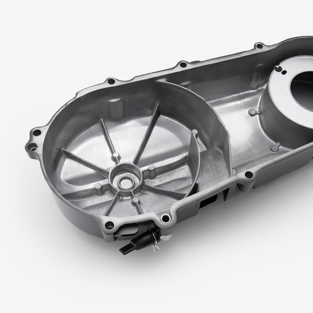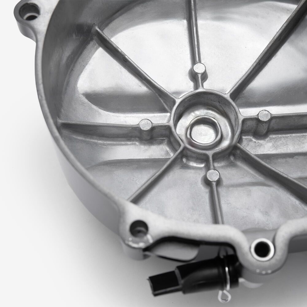The right engine casing in a motorcycle encloses and protects the engine's internal components on the right side, ensuring structural integrity and safeguarding against dirt, debris, and damage.