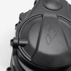 The right engine casing in a motorcycle encloses and protects the engine's internal components on the right side, ensuring structural integrity and safeguarding against dirt, debris, and damage.