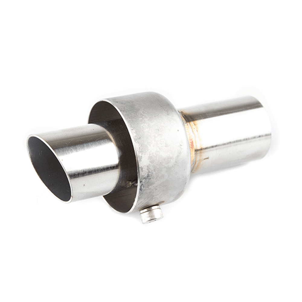 The exhaust baffle in a motorcycle reduces noise by directing exhaust gases through internal chambers and perforations, helping to manage sound levels while maintaining efficient exhaust flow.