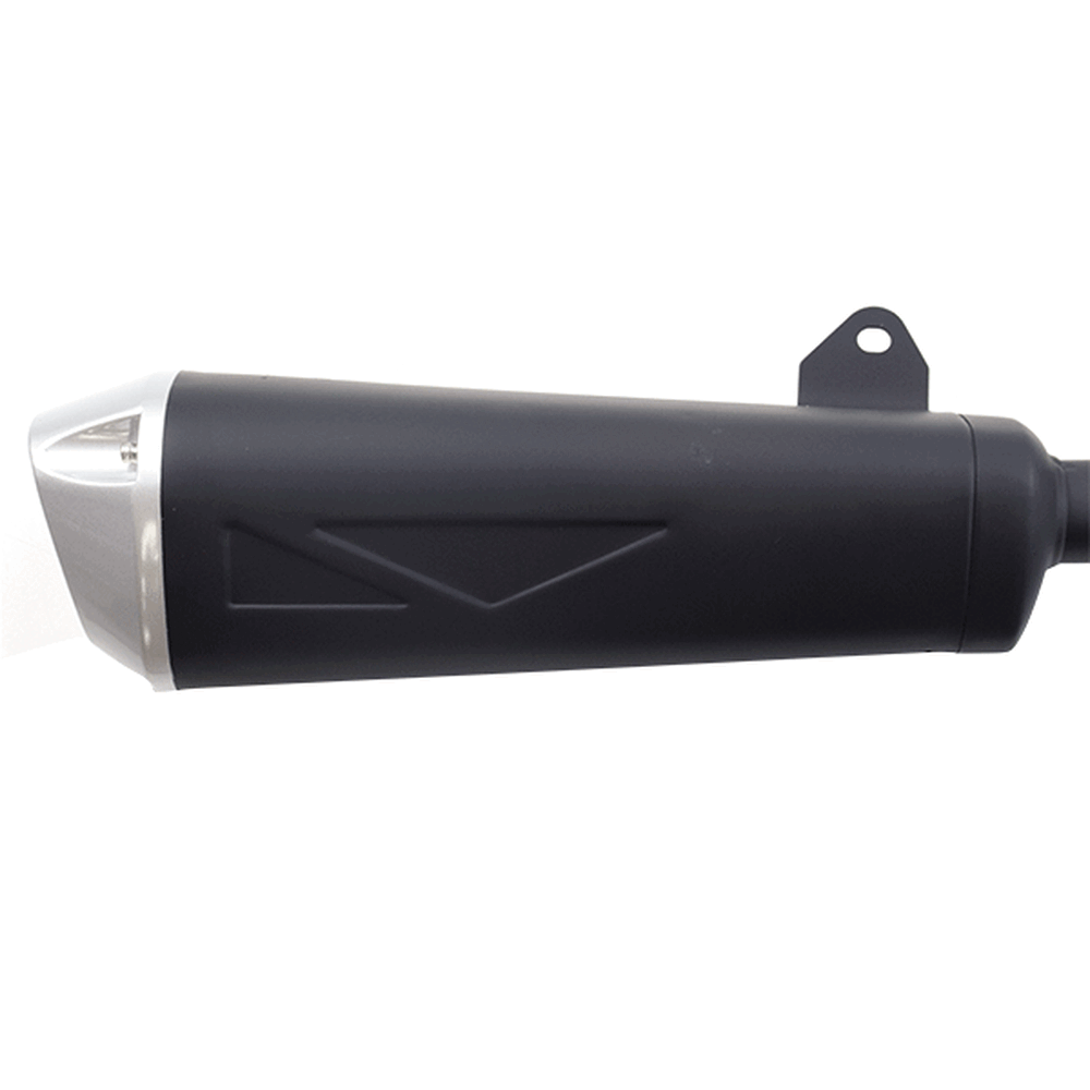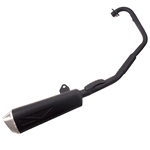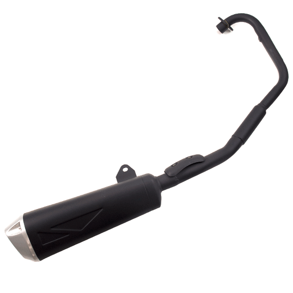 The complete exhaust system in a motorcycle includes all components from the engine's exhaust ports to the exhaust tip, responsible for directing exhaust gases away from the engine, reducing noise, and improving performance and emissions control.