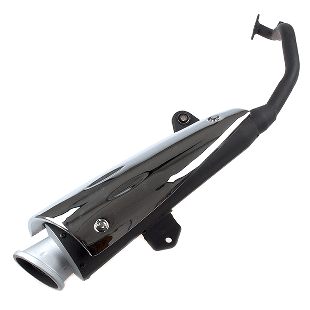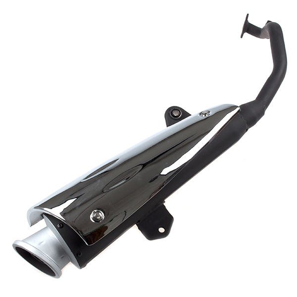 The complete exhaust system in a motorcycle includes all components from the engine's exhaust ports to the exhaust tip, responsible for directing exhaust gases away from the engine, reducing noise, and improving performance and emissions control.