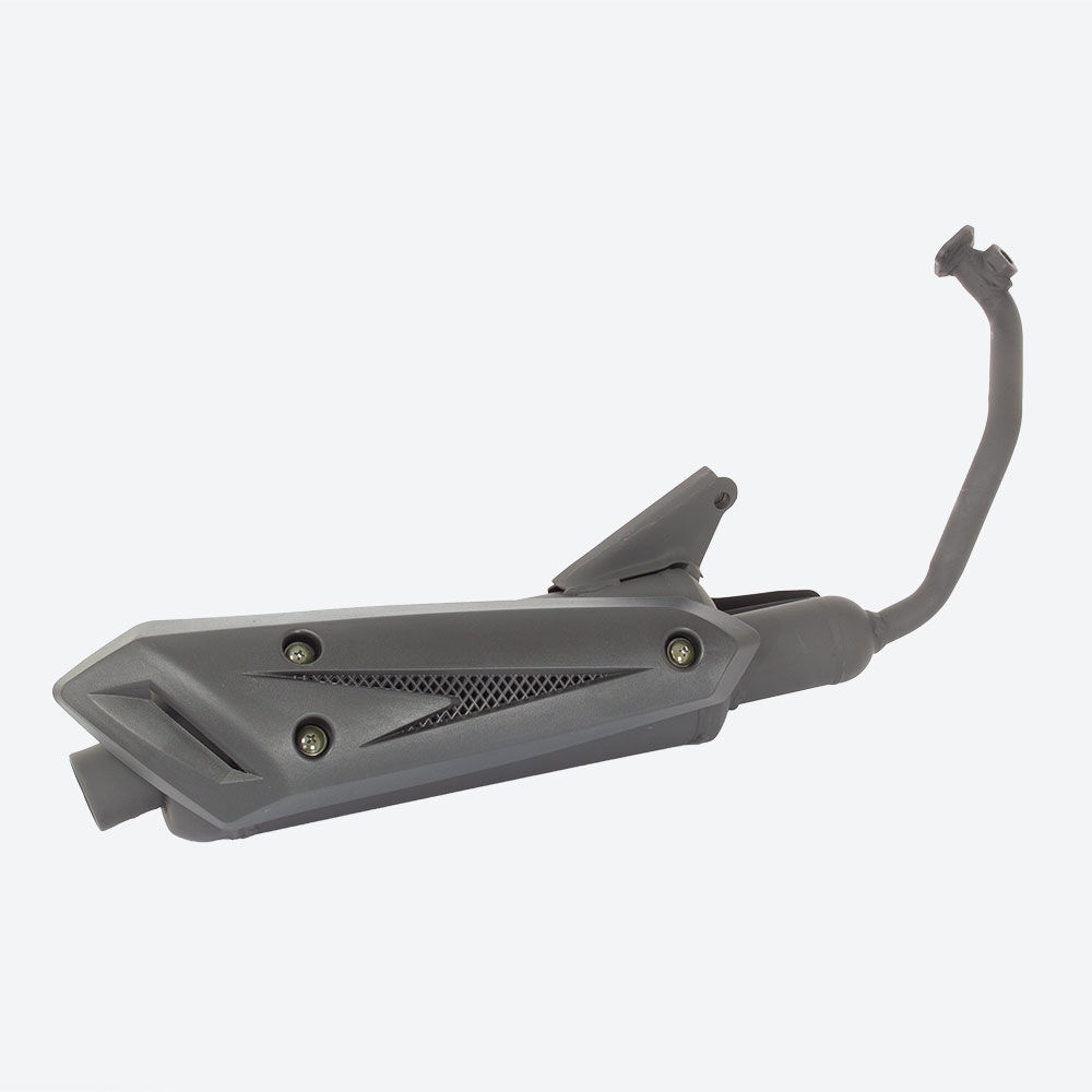 The complete exhaust system in a motorcycle includes all components from the engine's exhaust ports to the exhaust tip, responsible for directing exhaust gases away from the engine, reducing noise, and improving performance and emissions control.
