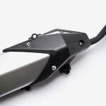 The complete exhaust system in a motorcycle includes all components from the engine's exhaust ports to the exhaust tip, responsible for directing exhaust gases away from the engine, reducing noise, and improving performance and emissions control.