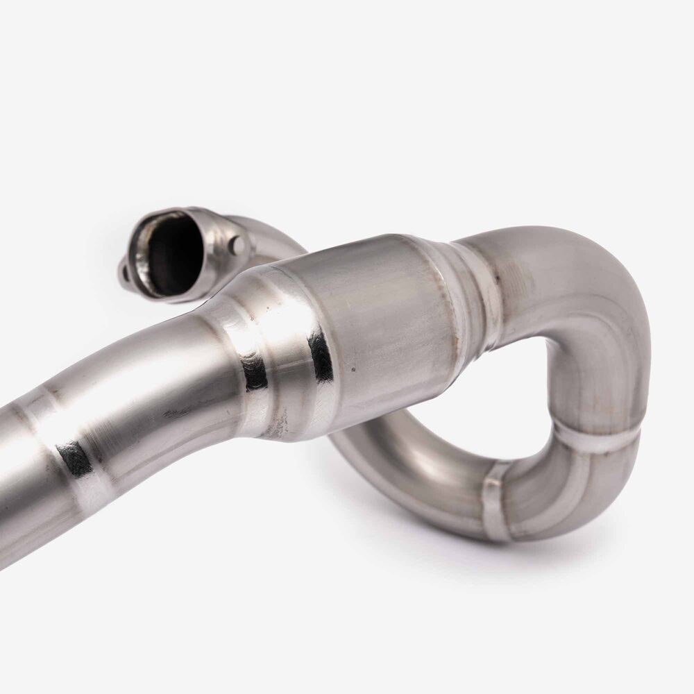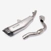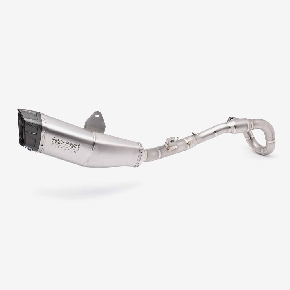 The complete exhaust system in a motorcycle includes all components from the engine's exhaust ports to the exhaust tip, responsible for directing exhaust gases away from the engine, reducing noise, and improving performance and emissions control.