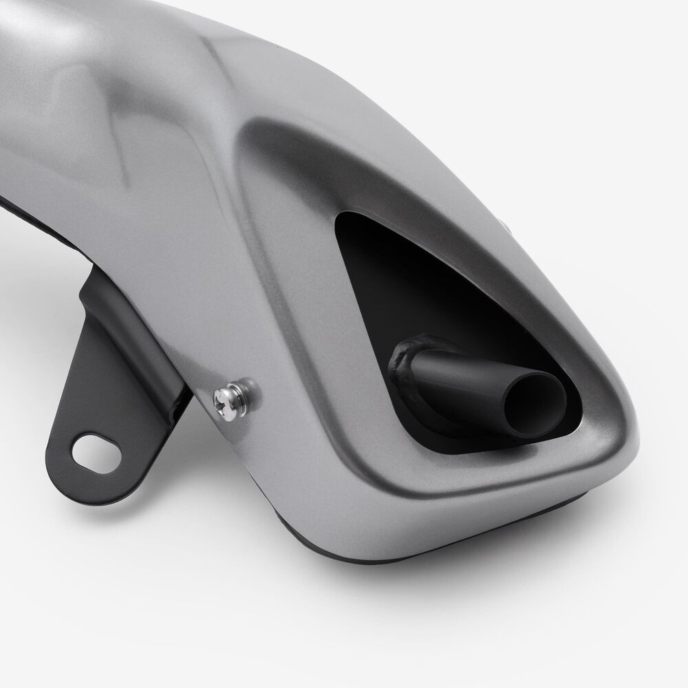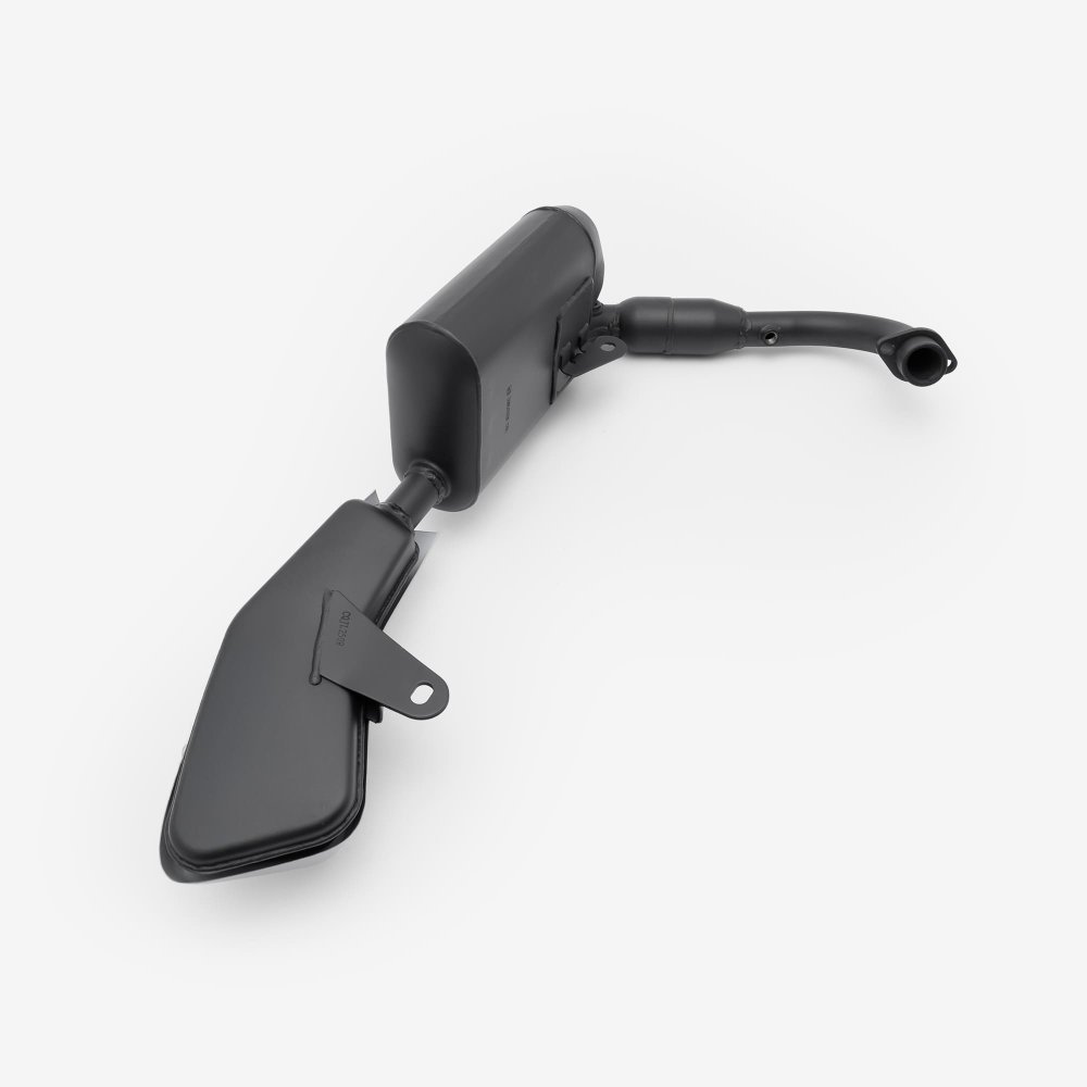 The complete exhaust system in a motorcycle includes all components from the engine's exhaust ports to the exhaust tip, responsible for directing exhaust gases away from the engine, reducing noise, and improving performance and emissions control.