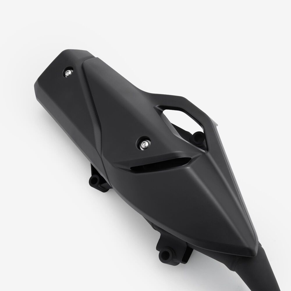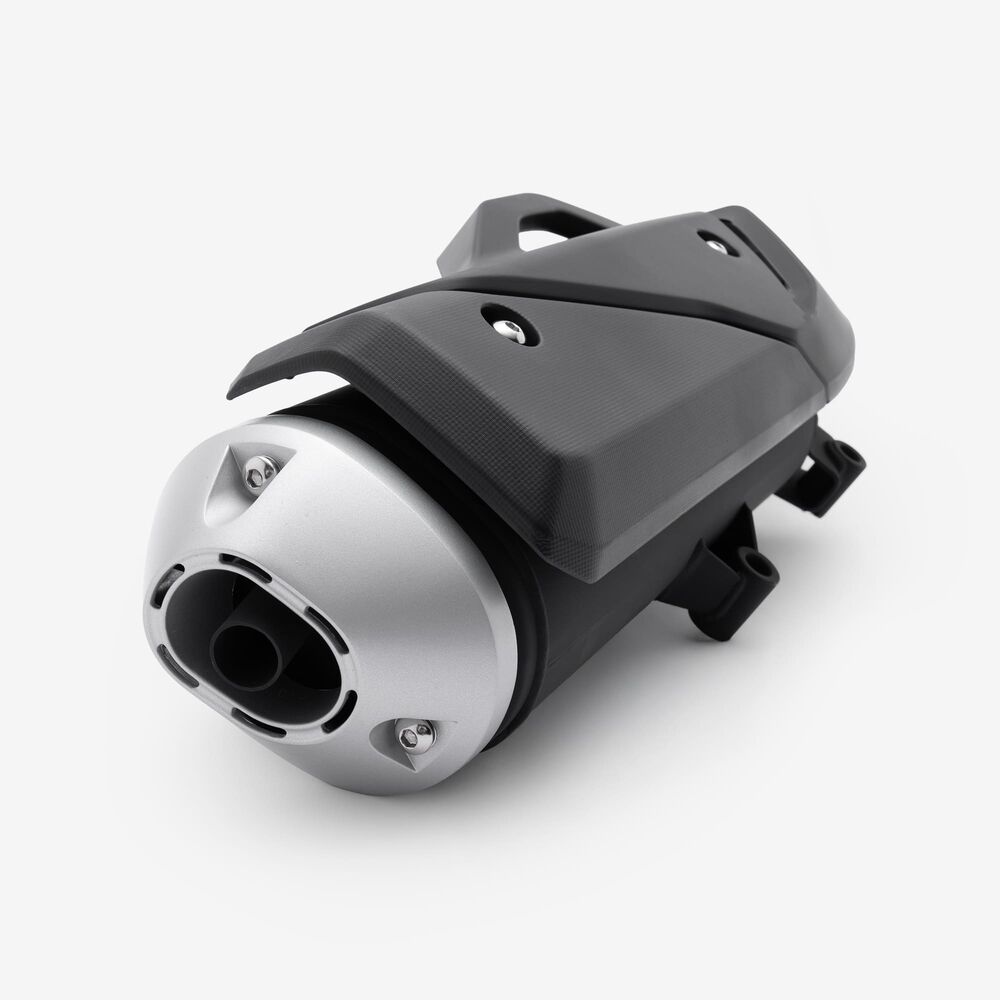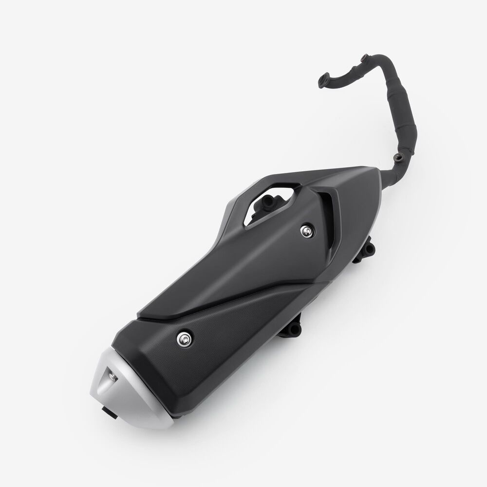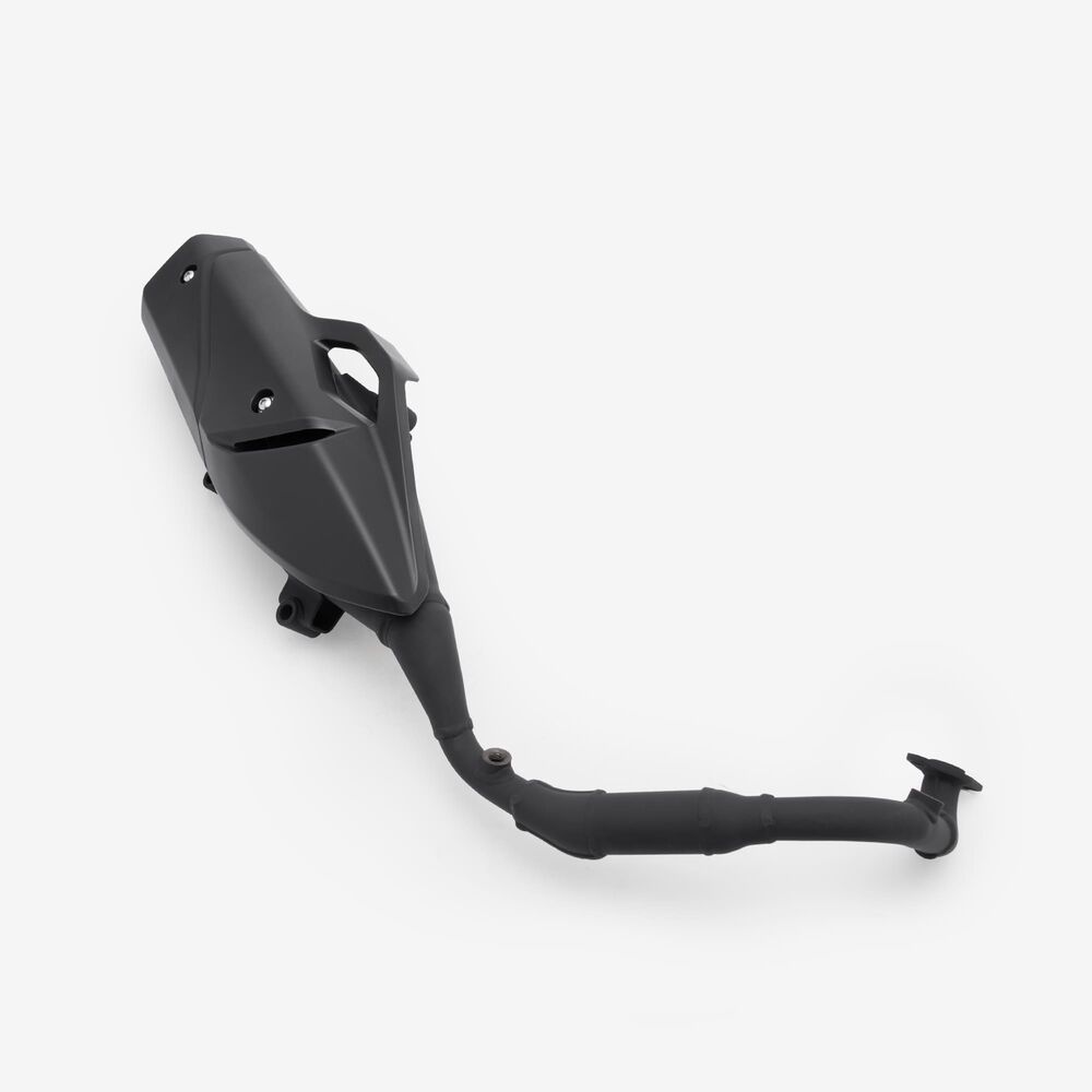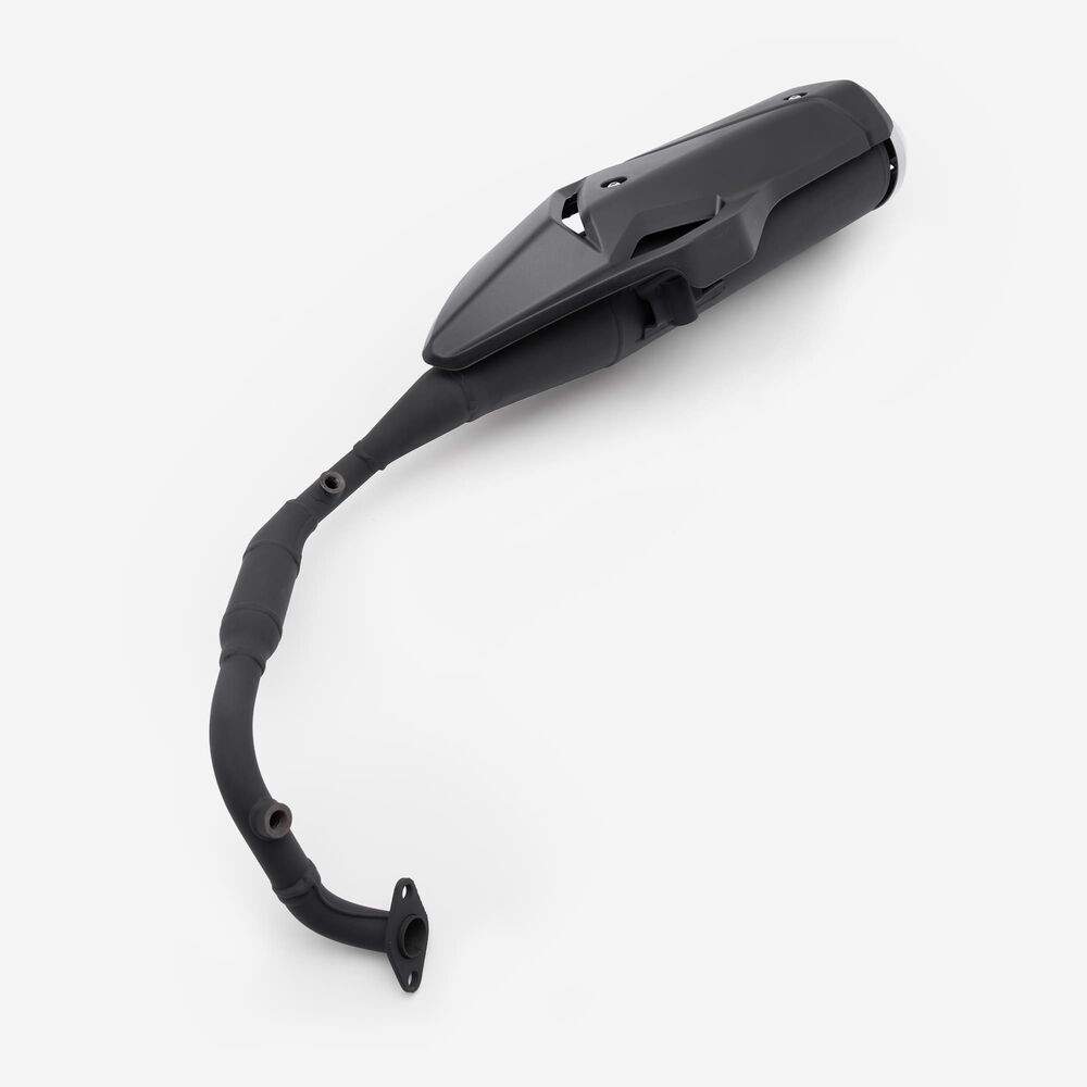 The complete exhaust system in a motorcycle includes all components from the engine's exhaust ports to the exhaust tip, responsible for directing exhaust gases away from the engine, reducing noise, and improving performance and emissions control.