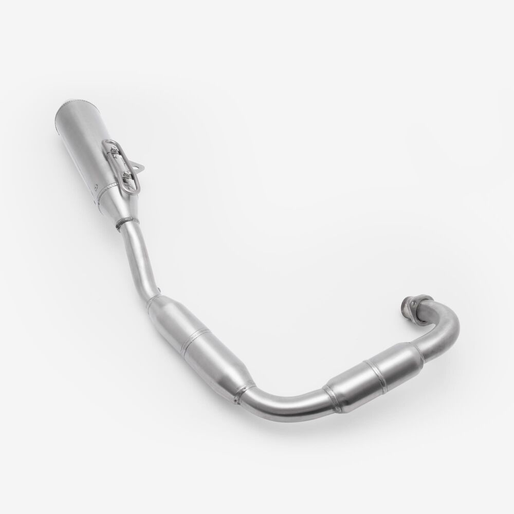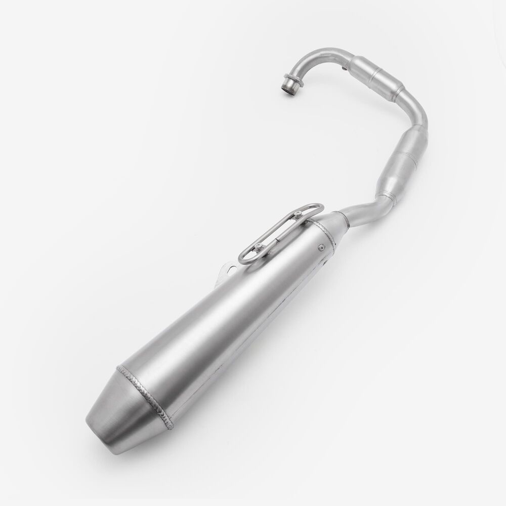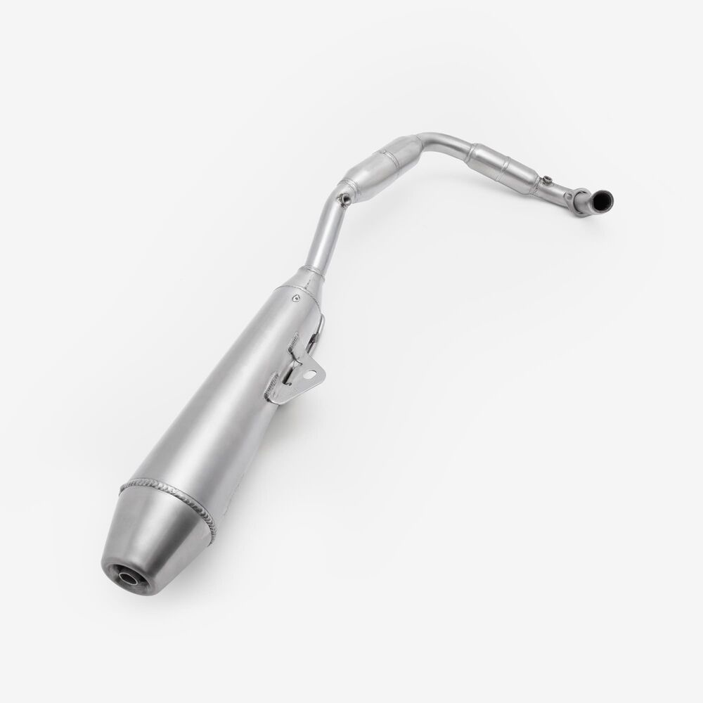 The complete exhaust system in a motorcycle includes all components from the engine's exhaust ports to the exhaust tip, responsible for directing exhaust gases away from the engine, reducing noise, and improving performance and emissions control.