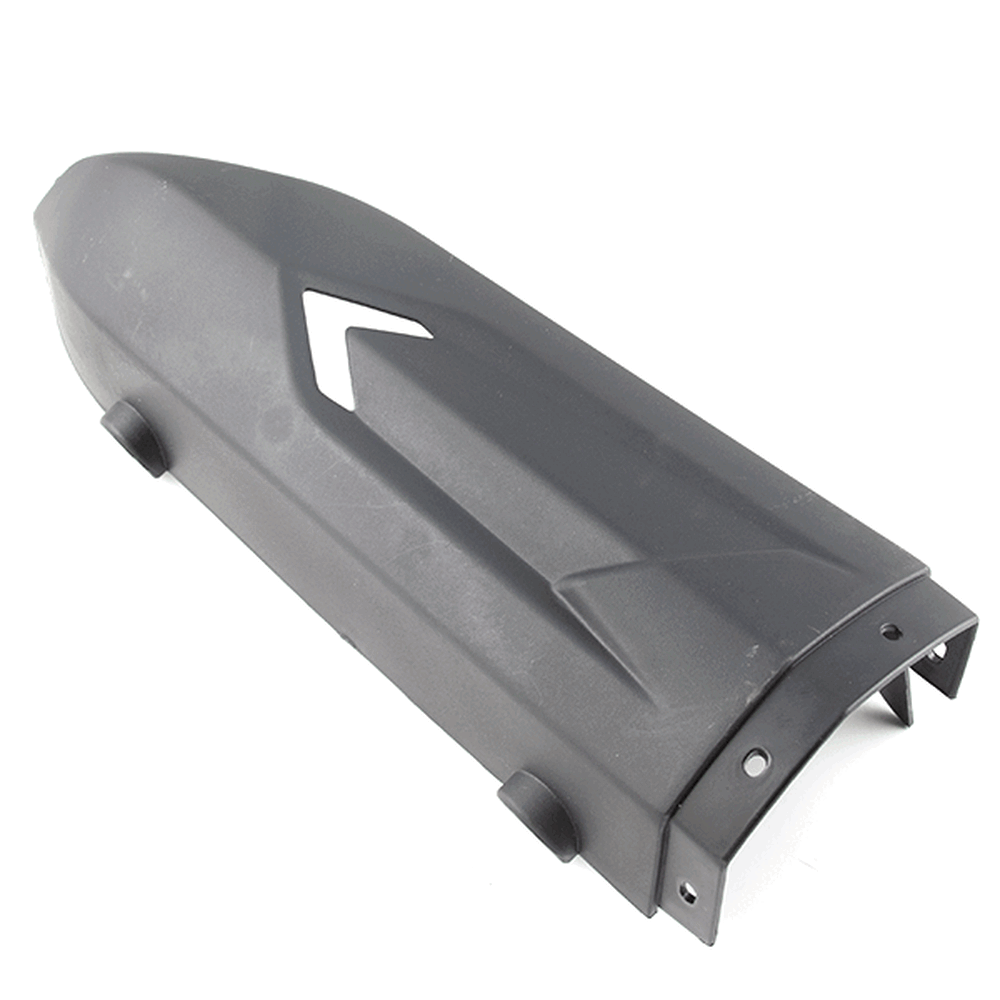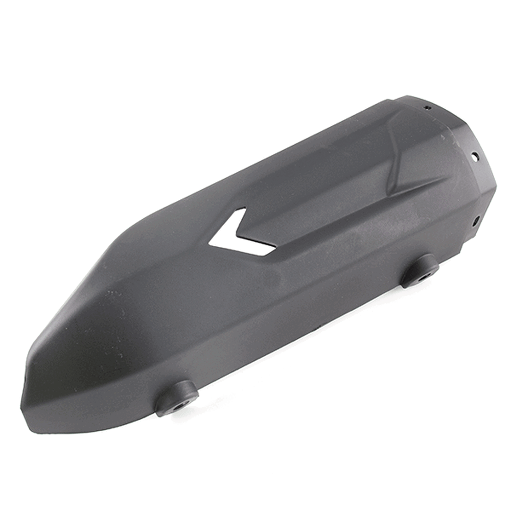 The exhaust cover in a motorcycle shields the exhaust system, protecting it from external damage while also enhancing the bike's appearance and preventing accidental contact with hot surfaces.