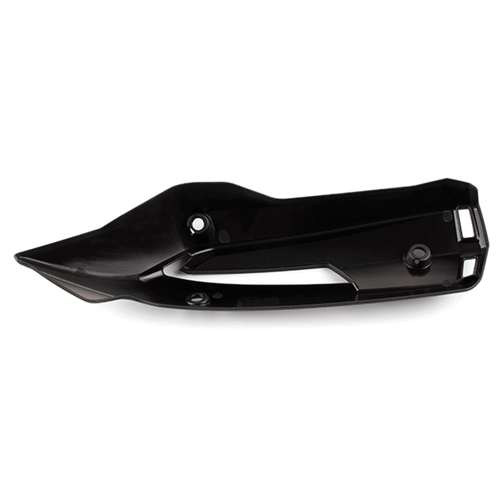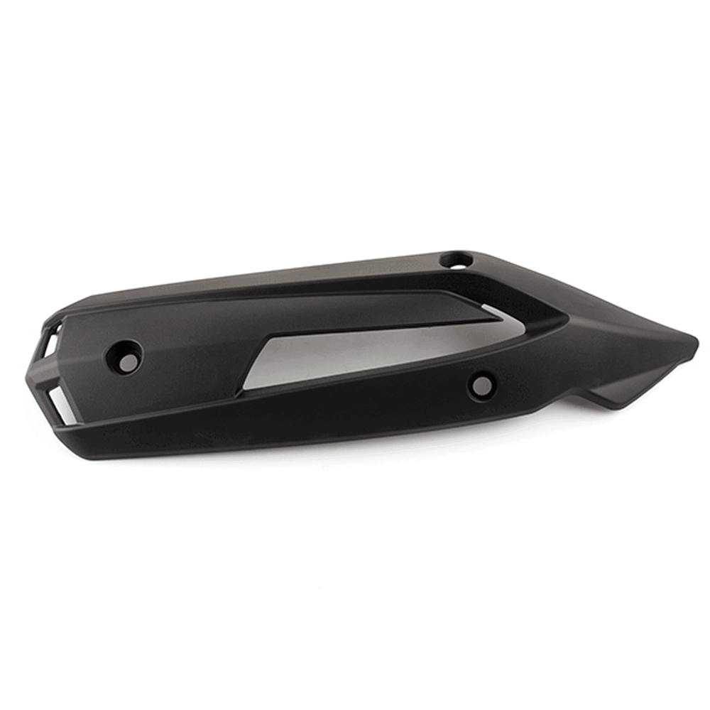 The exhaust cover in a motorcycle shields the exhaust system, protecting it from external damage while also enhancing the bike's appearance and preventing accidental contact with hot surfaces.