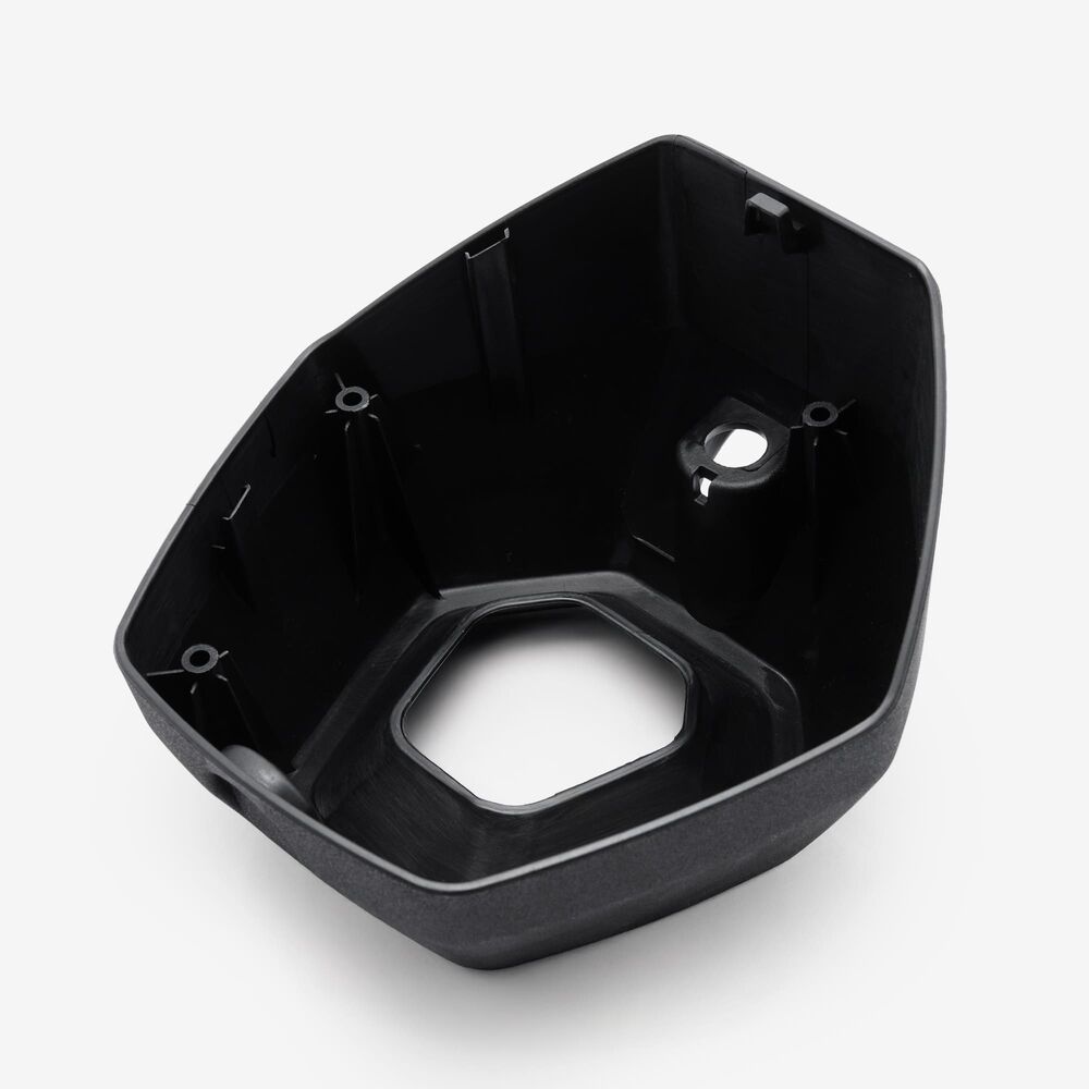 The exhaust cover in a motorcycle shields the exhaust system, protecting it from external damage while also enhancing the bike's appearance and preventing accidental contact with hot surfaces.