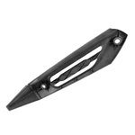 The exhaust guard in a motorcycle protects the rider from burns by covering hot exhaust components and preventing accidental contact, while also shielding the exhaust from damage.