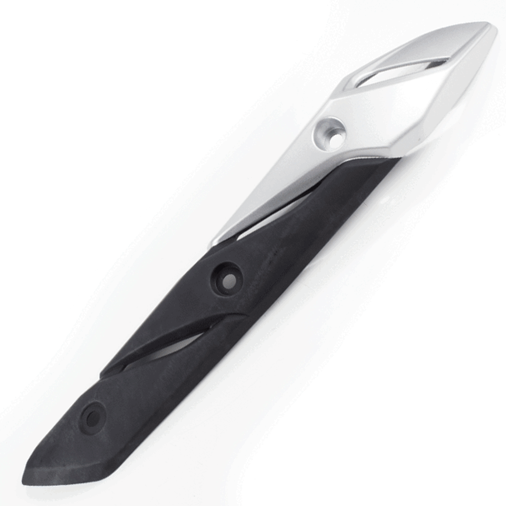 The exhaust guard in a motorcycle protects the rider from burns by covering hot exhaust components and preventing accidental contact, while also shielding the exhaust from damage.