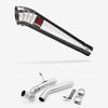 The exhaust fitting or fixing kit in a motorcycle includes all necessary hardware, such as bolts, gaskets, and clamps, for securely mounting and sealing the exhaust system components to the bike.