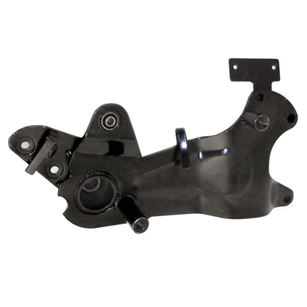 The exhaust mounting bracket in a motorcycle secures the exhaust system to the frame, providing stability and reducing vibrations.