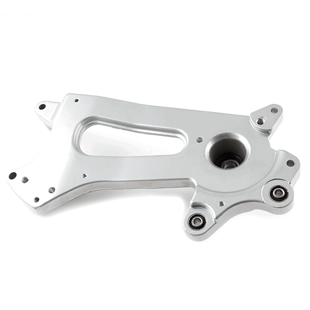 The exhaust mounting bracket in a motorcycle secures the exhaust system to the frame, providing stability and reducing vibrations.