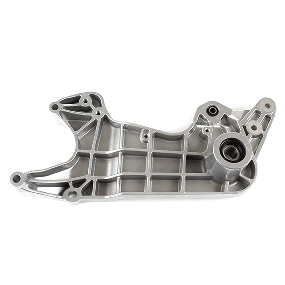 The exhaust mounting bracket in a motorcycle secures the exhaust system to the frame, providing stability and reducing vibrations.