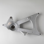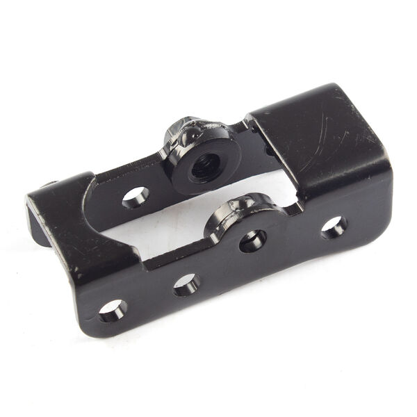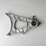 The exhaust mounting bracket in a motorcycle secures the exhaust system to the frame, providing stability and reducing vibrations.