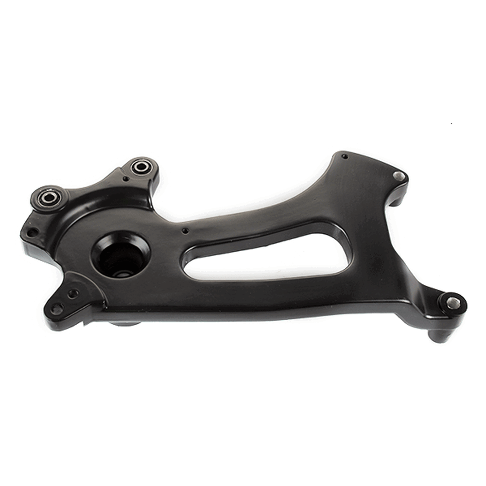 The exhaust mounting bracket in a motorcycle secures the exhaust system to the frame, providing stability and reducing vibrations.