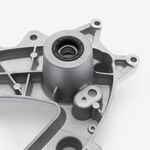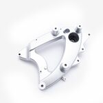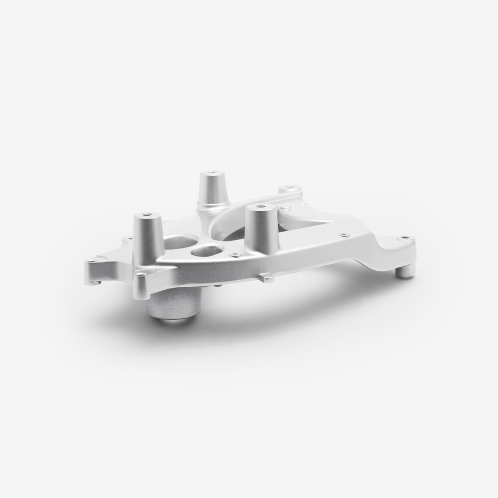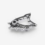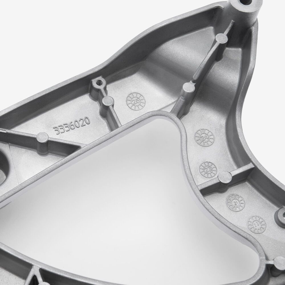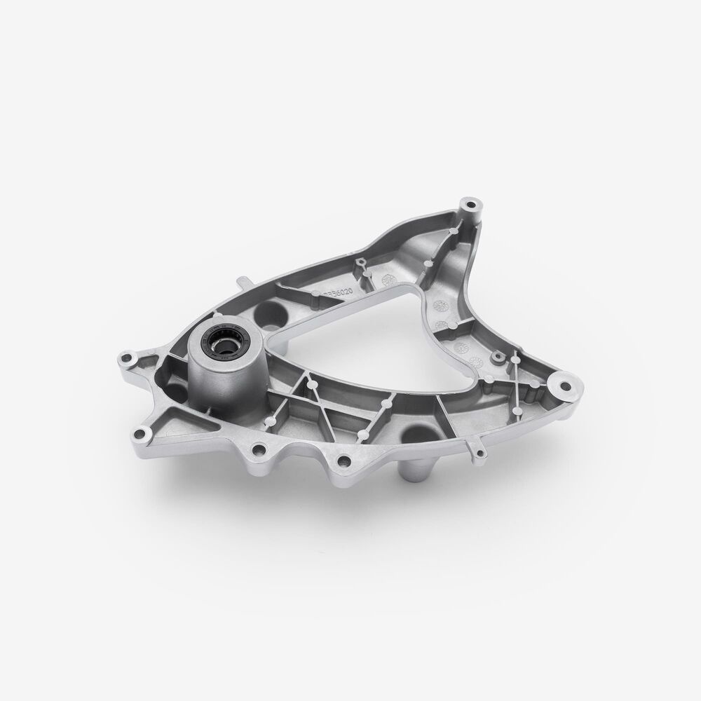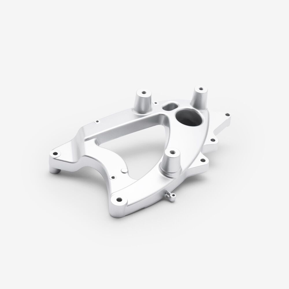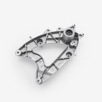 The exhaust mounting bracket in a motorcycle secures the exhaust system to the frame, providing stability and reducing vibrations.