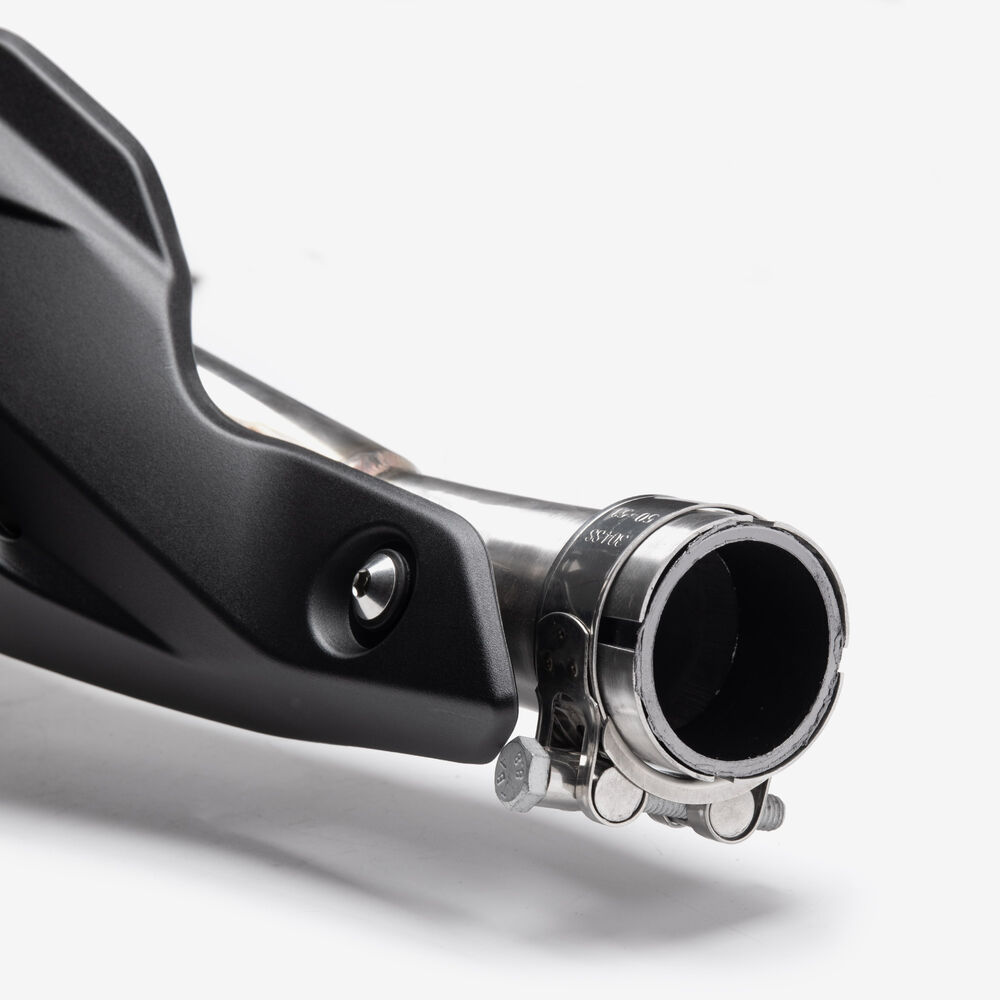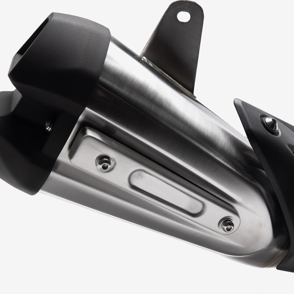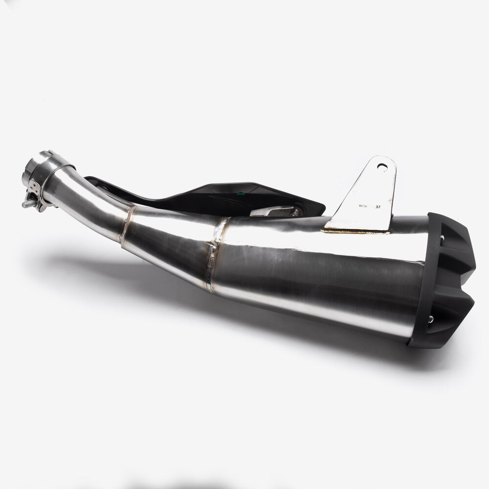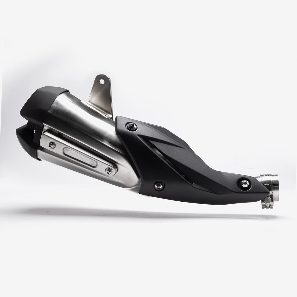 The motorcycle exhaust silencer, also known as a muffler, is a critical component designed to reduce the noise generated by the engine's exhaust gases. It achieves this by channeling the exhaust flow through a series of internal baffles, perforated tubes, and sound-absorbing materials. These features work together to dampen the noise produced during combustion, helping to meet noise regulations and provide a quieter riding experience. Additionally, the exhaust silencer helps to optimize exhaust flow, contributing to the overall performance and efficiency of the engine by ensuring smooth expulsion of exhaust gases. Its design also often includes provisions for durability and resistance to high temperatures, making it an essential part of the motorcycle's exhaust system.