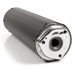 The motorcycle exhaust silencer, also known as a muffler, is a critical component designed to reduce the noise generated by the engine's exhaust gases. It achieves this by channeling the exhaust flow through a series of internal baffles, perforated tubes, and sound-absorbing materials. These features work together to dampen the noise produced during combustion, helping to meet noise regulations and provide a quieter riding experience. Additionally, the exhaust silencer helps to optimize exhaust flow, contributing to the overall performance and efficiency of the engine by ensuring smooth expulsion of exhaust gases. Its design also often includes provisions for durability and resistance to high temperatures, making it an essential part of the motorcycle's exhaust system.