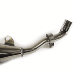 The motorcycle exhaust silencer, also known as a muffler, is a critical component designed to reduce the noise generated by the engine's exhaust gases. It achieves this by channeling the exhaust flow through a series of internal baffles, perforated tubes, and sound-absorbing materials. These features work together to dampen the noise produced during combustion, helping to meet noise regulations and provide a quieter riding experience. Additionally, the exhaust silencer helps to optimize exhaust flow, contributing to the overall performance and efficiency of the engine by ensuring smooth expulsion of exhaust gases. Its design also often includes provisions for durability and resistance to high temperatures, making it an essential part of the motorcycle's exhaust system.