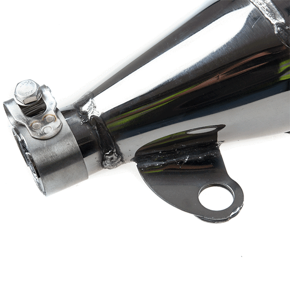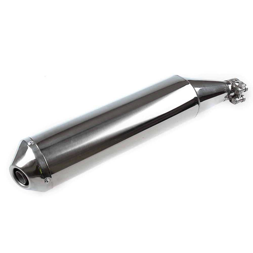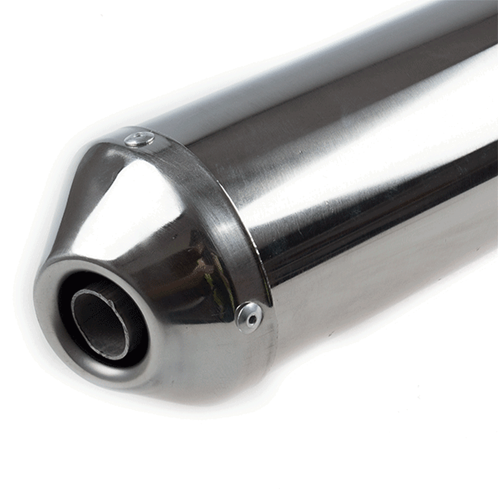 The motorcycle exhaust silencer, also known as a muffler, is a critical component designed to reduce the noise generated by the engine's exhaust gases. It achieves this by channeling the exhaust flow through a series of internal baffles, perforated tubes, and sound-absorbing materials. These features work together to dampen the noise produced during combustion, helping to meet noise regulations and provide a quieter riding experience. Additionally, the exhaust silencer helps to optimize exhaust flow, contributing to the overall performance and efficiency of the engine by ensuring smooth expulsion of exhaust gases. Its design also often includes provisions for durability and resistance to high temperatures, making it an essential part of the motorcycle's exhaust system.