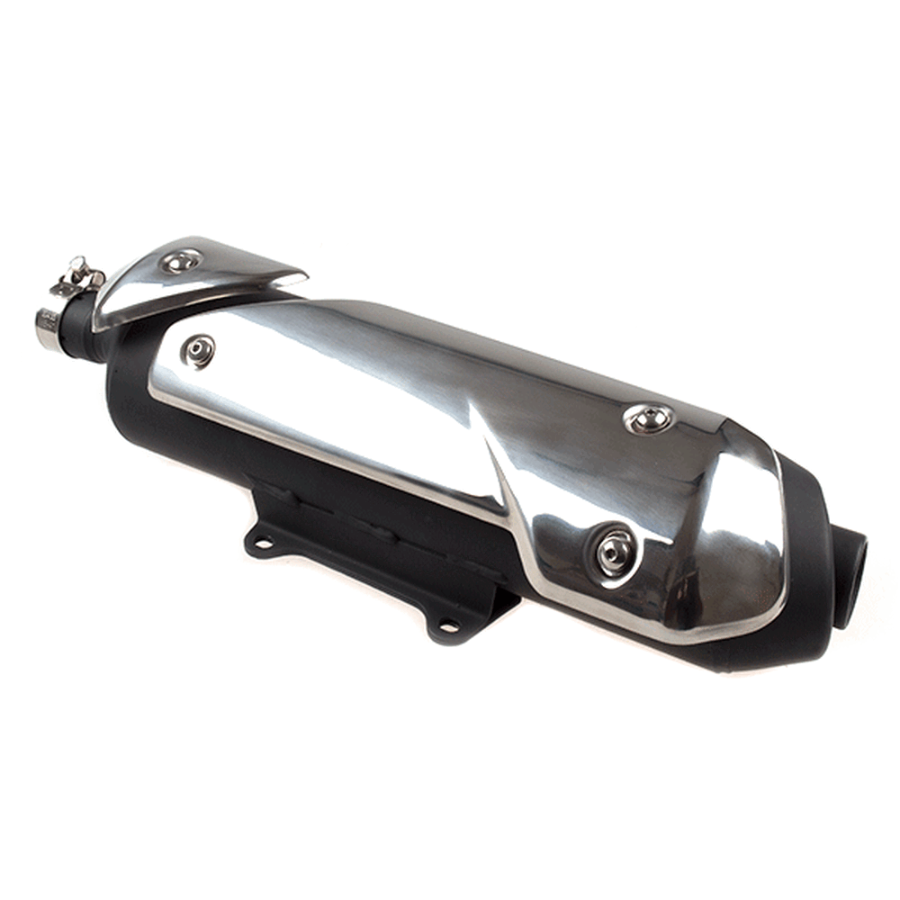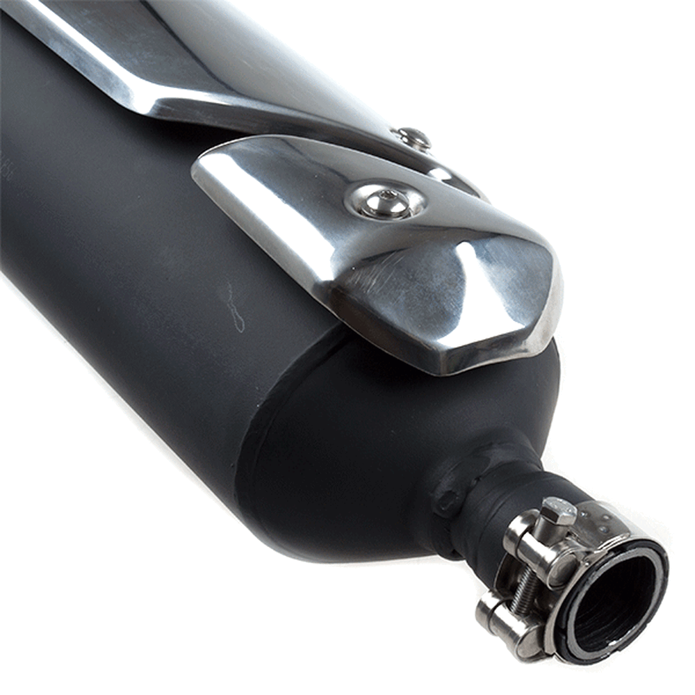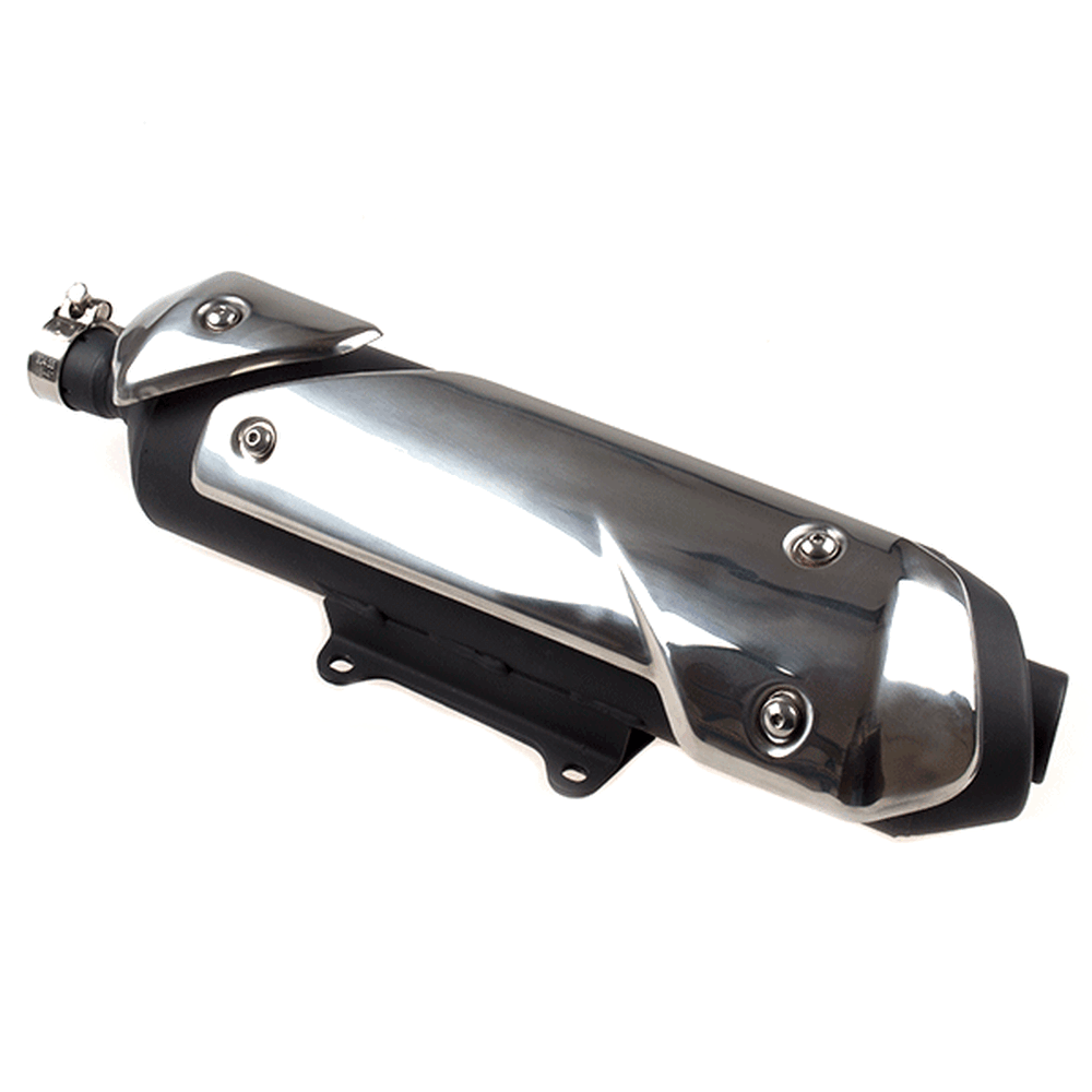 The motorcycle exhaust silencer, also known as a muffler, is a critical component designed to reduce the noise generated by the engine's exhaust gases. It achieves this by channeling the exhaust flow through a series of internal baffles, perforated tubes, and sound-absorbing materials. These features work together to dampen the noise produced during combustion, helping to meet noise regulations and provide a quieter riding experience. Additionally, the exhaust silencer helps to optimize exhaust flow, contributing to the overall performance and efficiency of the engine by ensuring smooth expulsion of exhaust gases. Its design also often includes provisions for durability and resistance to high temperatures, making it an essential part of the motorcycle's exhaust system.