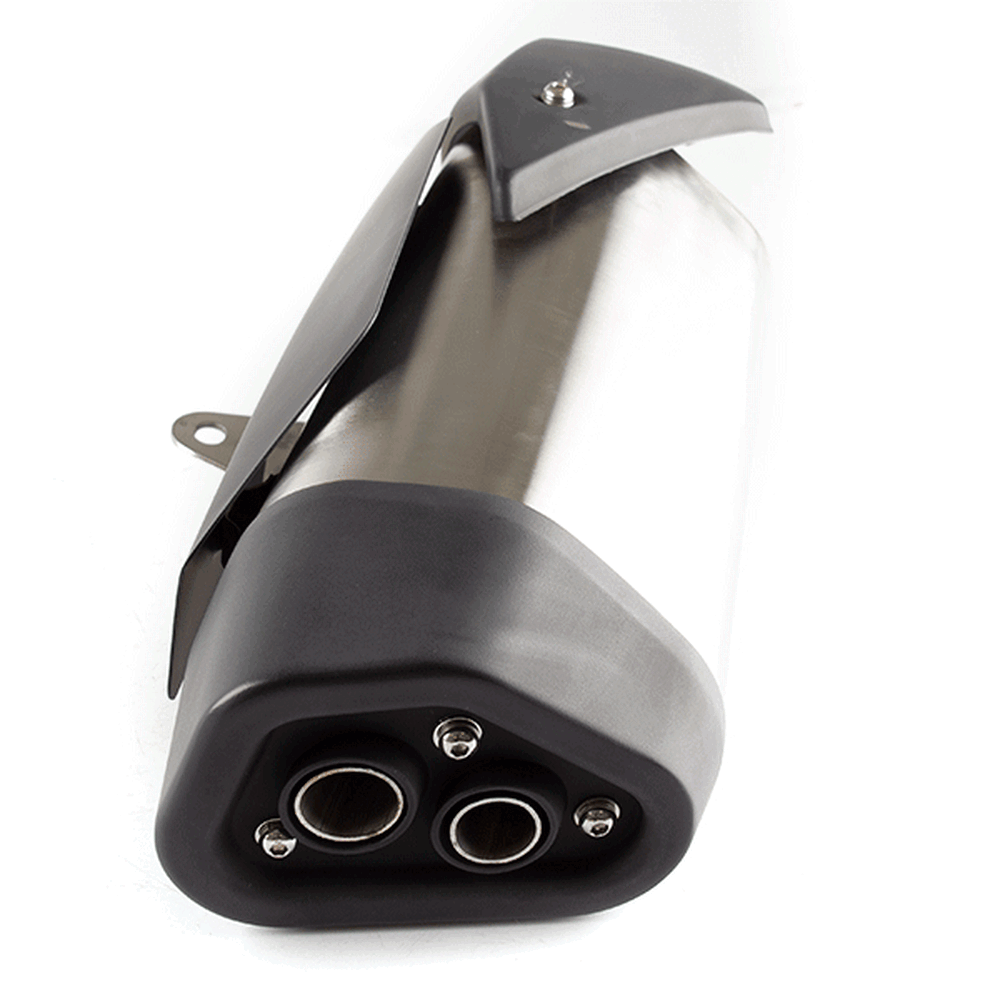 The motorcycle exhaust silencer, also known as a muffler, is a critical component designed to reduce the noise generated by the engine's exhaust gases. It achieves this by channeling the exhaust flow through a series of internal baffles, perforated tubes, and sound-absorbing materials. These features work together to dampen the noise produced during combustion, helping to meet noise regulations and provide a quieter riding experience. Additionally, the exhaust silencer helps to optimize exhaust flow, contributing to the overall performance and efficiency of the engine by ensuring smooth expulsion of exhaust gases. Its design also often includes provisions for durability and resistance to high temperatures, making it an essential part of the motorcycle's exhaust system.