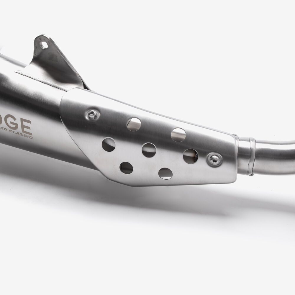 The motorcycle exhaust silencer, also known as a muffler, is a critical component designed to reduce the noise generated by the engine's exhaust gases. It achieves this by channeling the exhaust flow through a series of internal baffles, perforated tubes, and sound-absorbing materials. These features work together to dampen the noise produced during combustion, helping to meet noise regulations and provide a quieter riding experience. Additionally, the exhaust silencer helps to optimize exhaust flow, contributing to the overall performance and efficiency of the engine by ensuring smooth expulsion of exhaust gases. Its design also often includes provisions for durability and resistance to high temperatures, making it an essential part of the motorcycle's exhaust system.