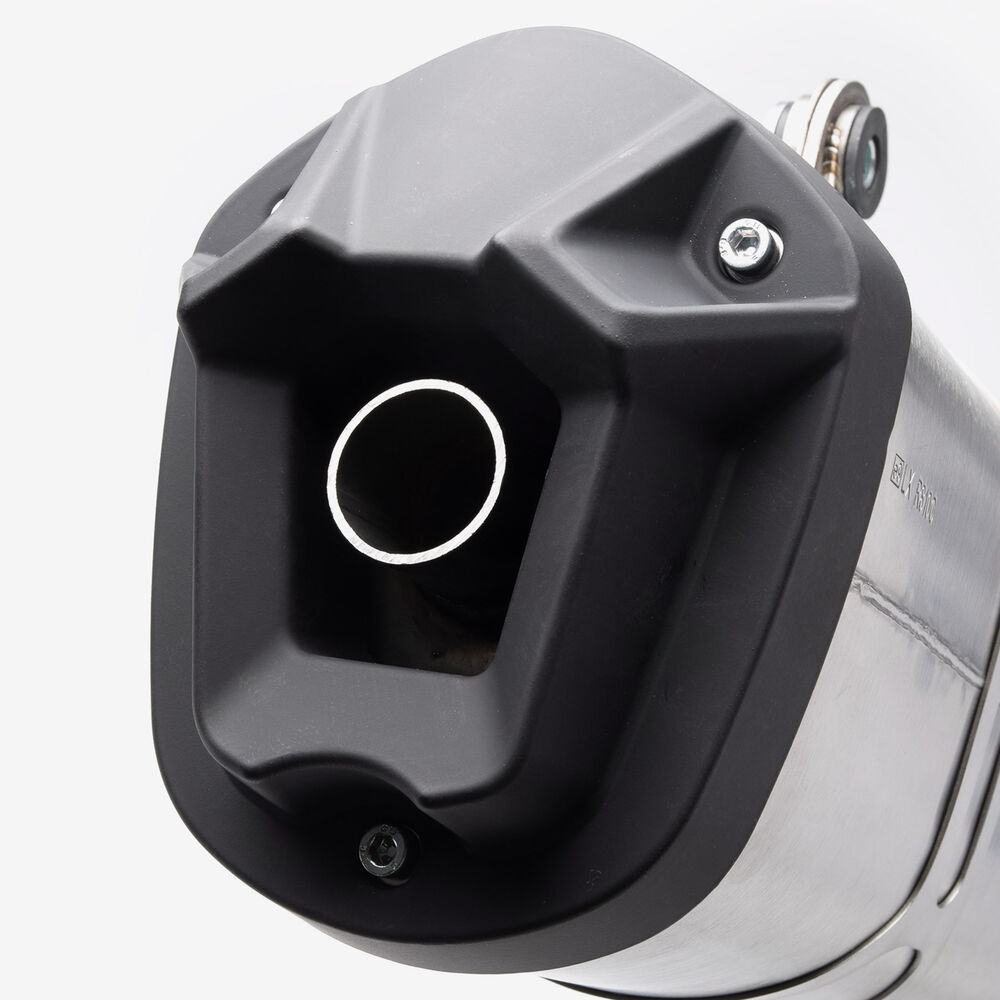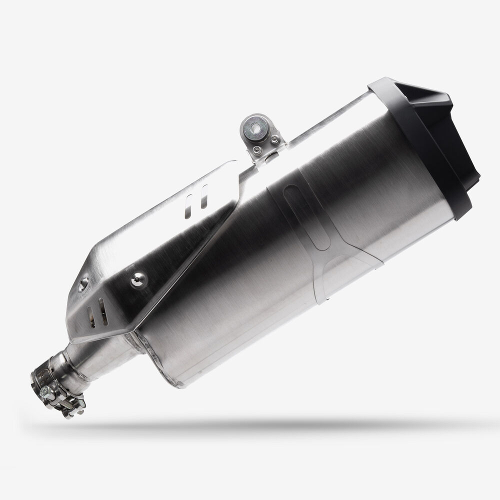 The motorcycle exhaust silencer, also known as a muffler, is a critical component designed to reduce the noise generated by the engine's exhaust gases. It achieves this by channeling the exhaust flow through a series of internal baffles, perforated tubes, and sound-absorbing materials. These features work together to dampen the noise produced during combustion, helping to meet noise regulations and provide a quieter riding experience. Additionally, the exhaust silencer helps to optimize exhaust flow, contributing to the overall performance and efficiency of the engine by ensuring smooth expulsion of exhaust gases. Its design also often includes provisions for durability and resistance to high temperatures, making it an essential part of the motorcycle's exhaust system.