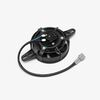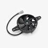 The cooling fan in a motorcycle helps regulate engine temperature by expelling heat from the radiator or engine components, ensuring optimal performance and preventing overheating.