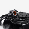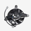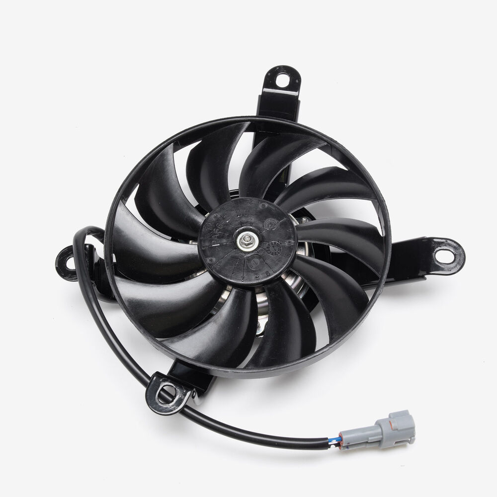 The cooling fan in a motorcycle helps regulate engine temperature by expelling heat from the radiator or engine components, ensuring optimal performance and preventing overheating.