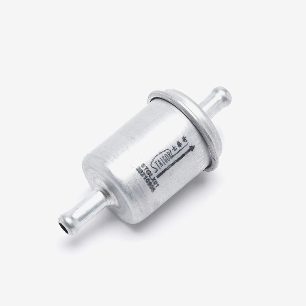 The fuel filter in a motorcycle removes impurities and debris from the fuel before it reaches the engine, ensuring clean fuel flow and protecting the engine from potential damage.