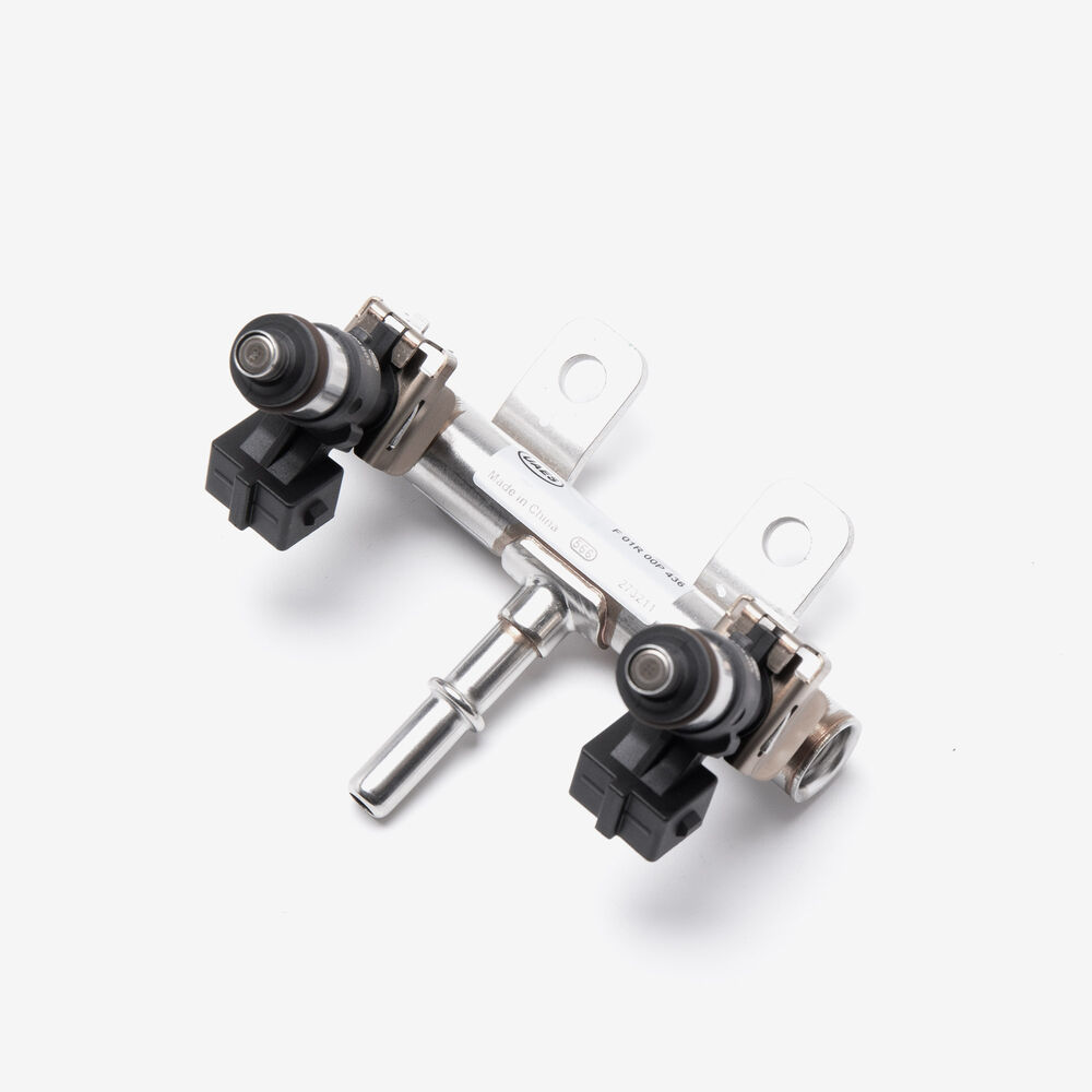 The fuel injector in a motorcycle precisely sprays fuel into the combustion chamber, ensuring accurate fuel delivery for efficient combustion and optimal engine performance.