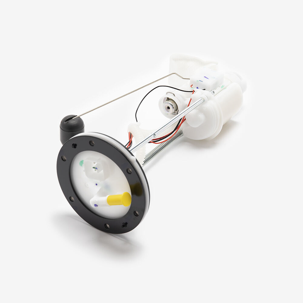 The fuel pump in a motorcycle delivers fuel from the tank to the engine at the required pressure.
