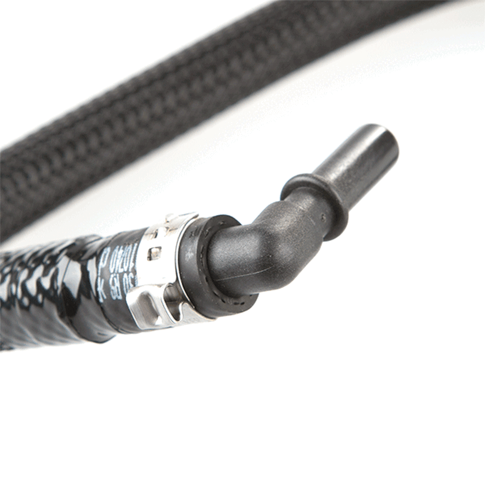 The fuel pipe or hose in a motorcycle transports fuel from the tank to the engine.