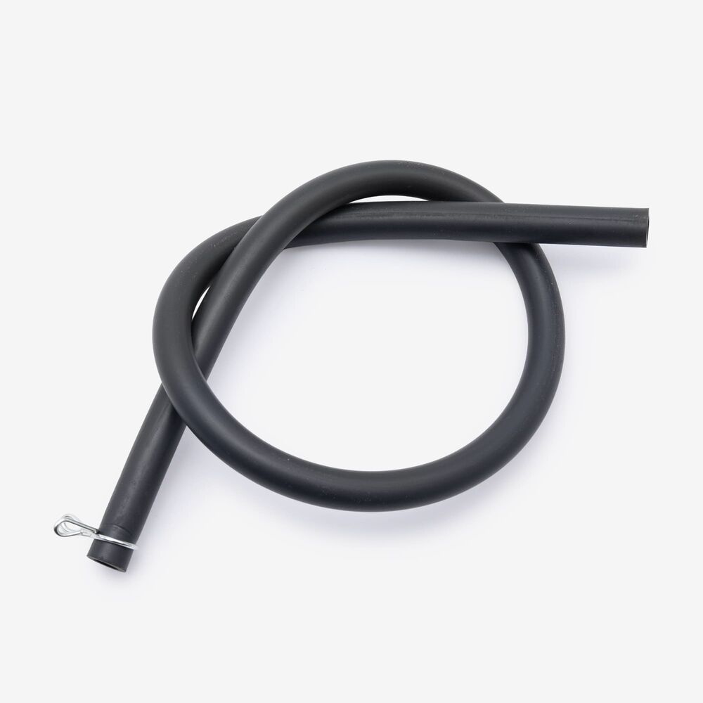 The fuel pipe or hose in a motorcycle transports fuel from the tank to the engine.