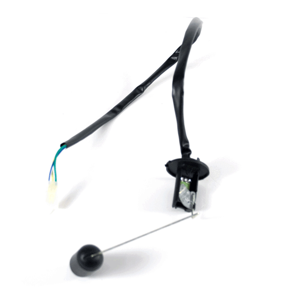 The fuel level sensor in a motorcycle monitors the amount of fuel in the tank and sends this information to the dashboard, helping the rider keep track of fuel levels and plan refueling accordingly.