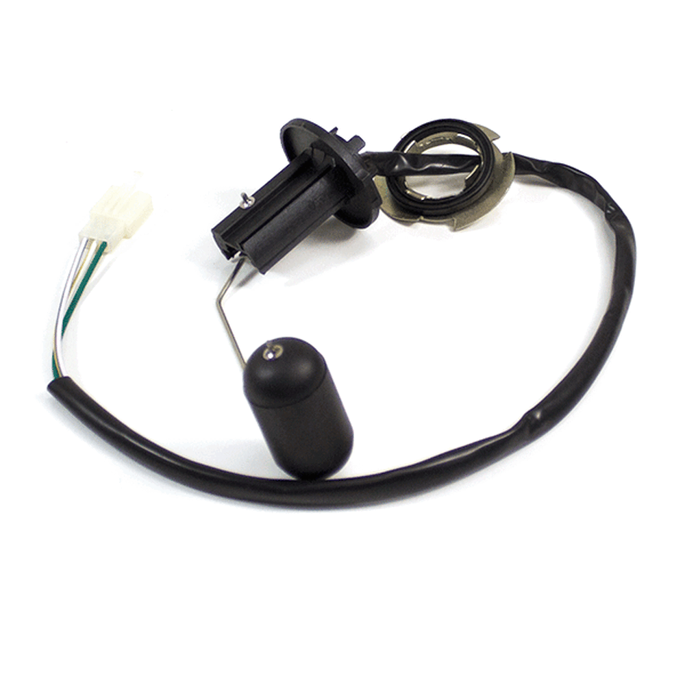 The fuel level sensor in a motorcycle monitors the amount of fuel in the tank and sends this information to the dashboard, helping the rider keep track of fuel levels and plan refueling accordingly.
