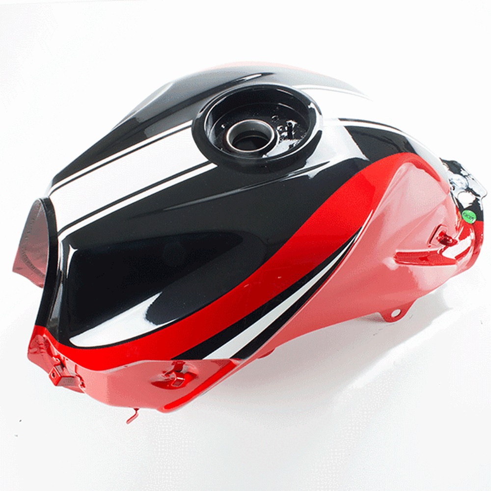 The fuel tank in a motorcycle stores and supplies fuel to the engine, ensuring a steady flow of fuel for combustion while also serving as a key component of the bike's design and ergonomics.