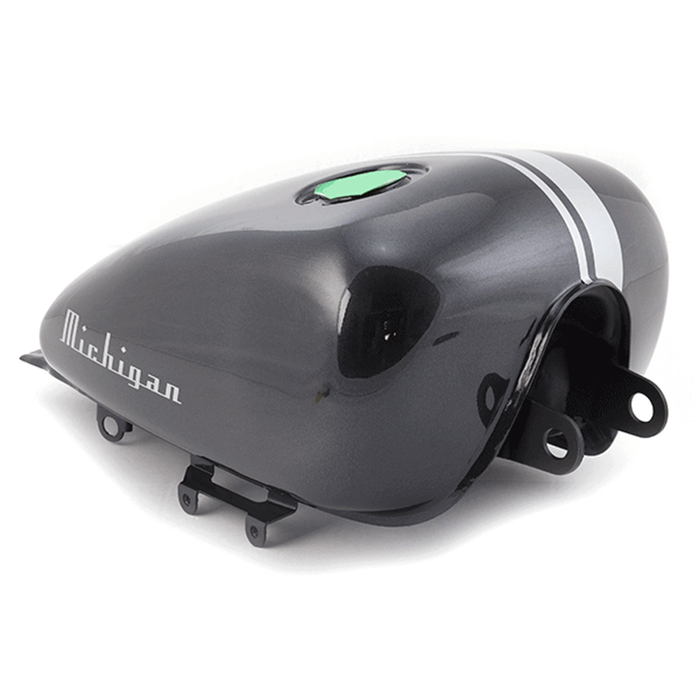 The fuel tank in a motorcycle stores and supplies fuel to the engine, ensuring a steady flow of fuel for combustion while also serving as a key component of the bike's design and ergonomics.