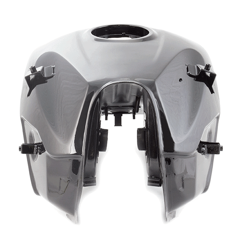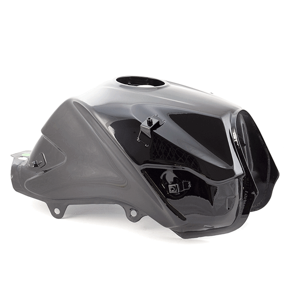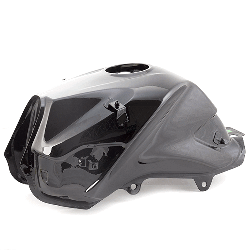 The fuel tank in a motorcycle stores and supplies fuel to the engine, ensuring a steady flow of fuel for combustion while also serving as a key component of the bike's design and ergonomics.