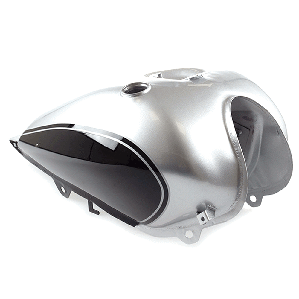 The fuel tank in a motorcycle stores and supplies fuel to the engine, ensuring a steady flow of fuel for combustion while also serving as a key component of the bike's design and ergonomics.