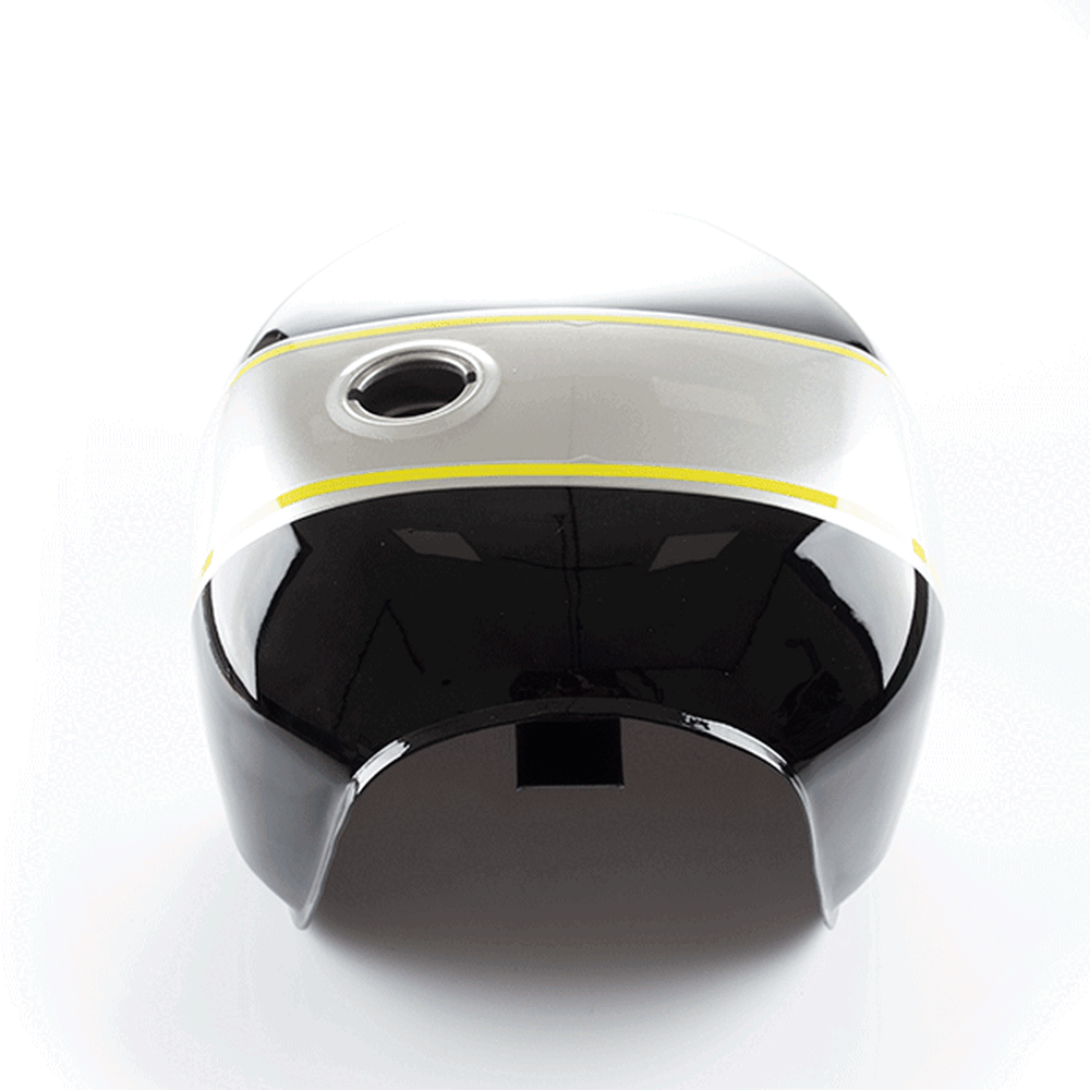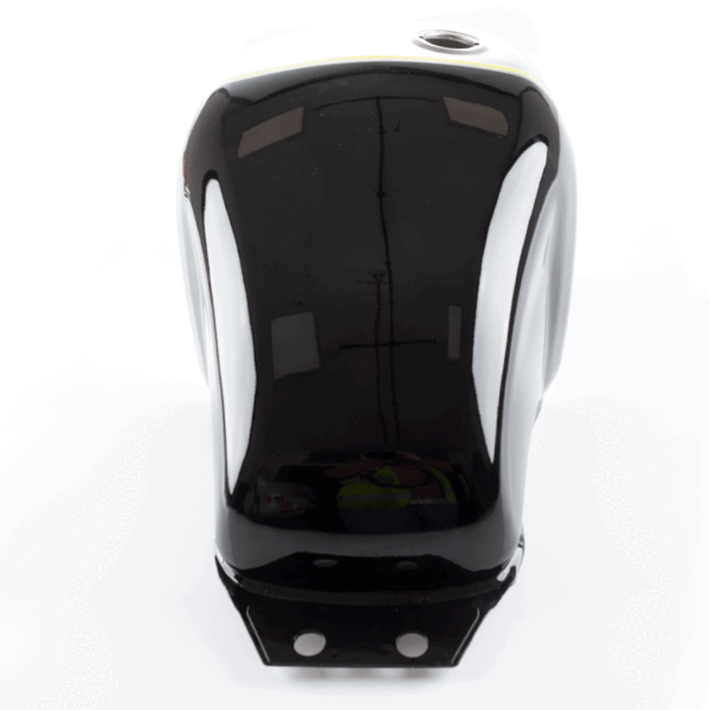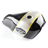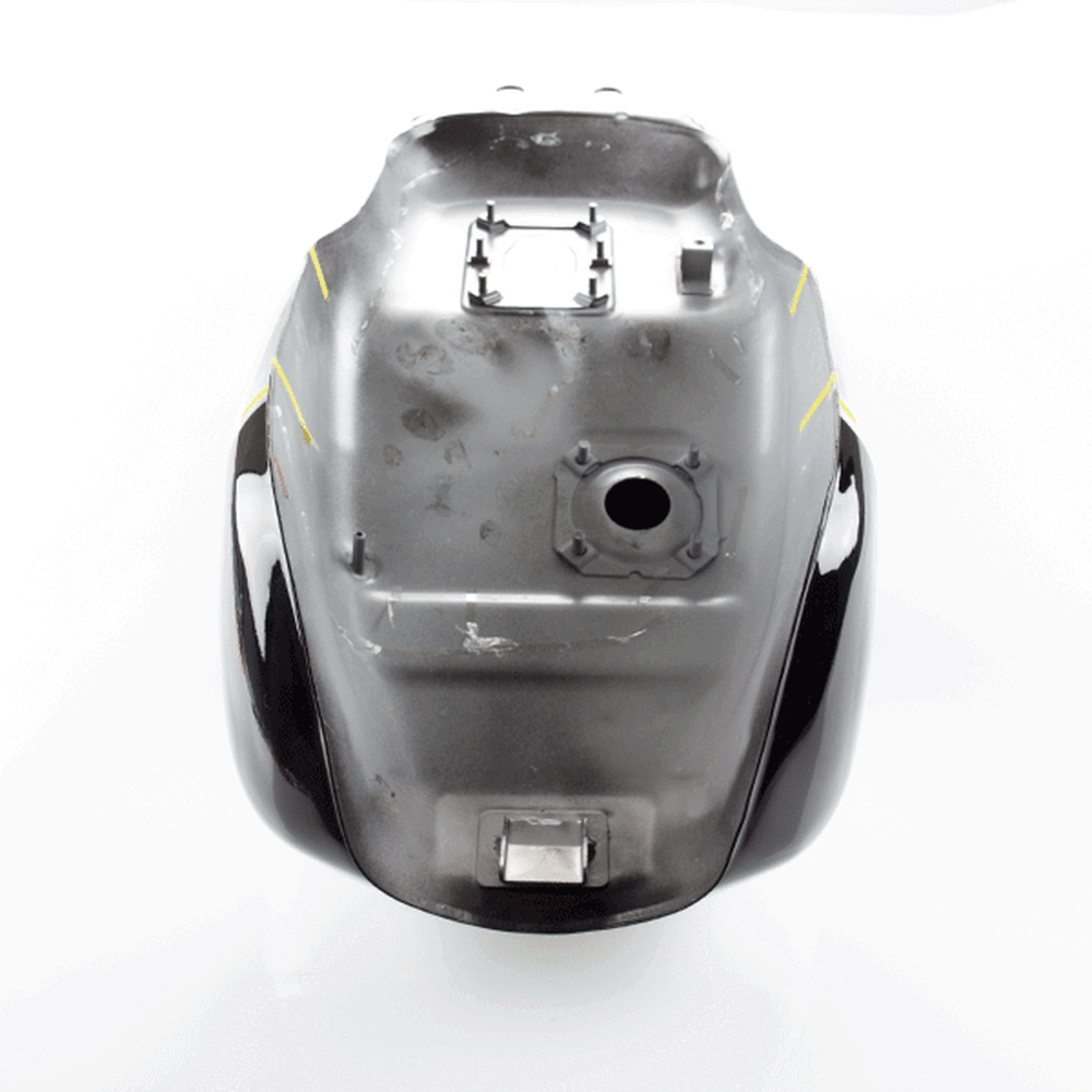 The fuel tank in a motorcycle stores and supplies fuel to the engine, ensuring a steady flow of fuel for combustion while also serving as a key component of the bike's design and ergonomics.