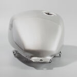 The fuel tank in a motorcycle stores and supplies fuel to the engine, ensuring a steady flow of fuel for combustion while also serving as a key component of the bike's design and ergonomics.